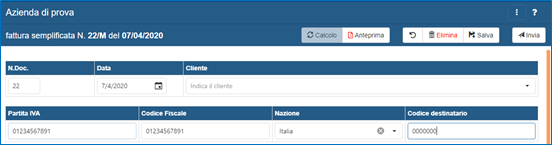 2. inserendo direttamente i dati di Partita IVA, Codice Fiscale e Codice destinatario. In questo secondo caso non è previsto l'inserimento dei dati di Nome e Cognome del soggetto destinatario del documento.