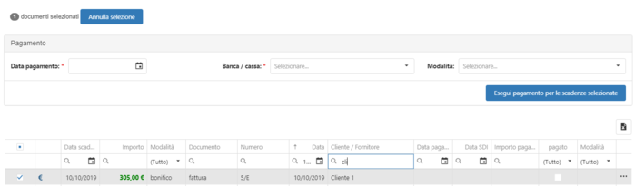 Nel momento in cui vengono selezionate una o più scadenze, compare una maschera che permette all'utente di procedere alla chiusura massiva delle posizioni. Con questa procedura, tutte le scadenze selezionate verranno saldate.